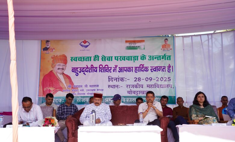 यह बात प्रदेश के पर्यटन, लोक निर्माण, सिंचाई, पंचायतीराज, ग्रामीण निर्माण, जलागम, धर्मस्व एवं संस्कृति मंत्री एवं चौबट्टाखाल विधायक सतपाल महाराज ने स्वच्छता ही सेवा-2025 पखवाड़ा के अंतर्गत रविवार को राजकीय डिग्री कॉलेज, चौबट्टाखाल में आयोजित बहुउद्देशीय शिविर में बतौर मुख्य अतिथि प्रतिभाग करते हुए कही। बहुउद्देशीय शिविर में प्रतिभाग कर रहे सभी प्रबुद्धजनों, पार्टी कार्यकर्ताओं एवं पदाधिकारियों का अभिनन्दन करते हुए उन्होंने कहा कि हमारी सरकार लगातार प्रदेश का विकास करने में लगी है। विधानसभा क्षेत्र चौबट्टाखाल के अंतर्गत 2022 के बाद इन तीन वर्षों में प्रथम चरण में 53 किलोमीटर सड़कों की स्वीकृति दी गयी, इनमें से अधिकतर मोटरमार्गों का रोड़ कटान का कार्य हो चुका है।