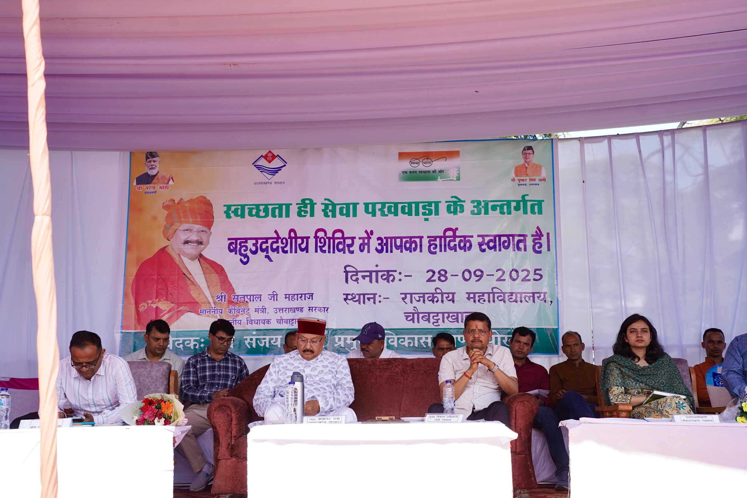 यह बात प्रदेश के पर्यटन, लोक निर्माण, सिंचाई, पंचायतीराज, ग्रामीण निर्माण, जलागम, धर्मस्व एवं संस्कृति मंत्री एवं चौबट्टाखाल विधायक सतपाल महाराज ने स्वच्छता ही सेवा-2025 पखवाड़ा के अंतर्गत रविवार को राजकीय डिग्री कॉलेज, चौबट्टाखाल में आयोजित बहुउद्देशीय शिविर में बतौर मुख्य अतिथि प्रतिभाग करते हुए कही। बहुउद्देशीय शिविर में प्रतिभाग कर रहे सभी प्रबुद्धजनों, पार्टी कार्यकर्ताओं एवं पदाधिकारियों का अभिनन्दन करते हुए उन्होंने कहा कि हमारी सरकार लगातार प्रदेश का विकास करने में लगी है। विधानसभा क्षेत्र चौबट्टाखाल के अंतर्गत 2022 के बाद इन तीन वर्षों में प्रथम चरण में 53 किलोमीटर सड़कों की स्वीकृति दी गयी, इनमें से अधिकतर मोटरमार्गों का रोड़ कटान का कार्य हो चुका है।