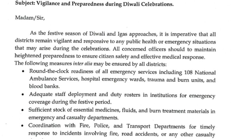 दीपावली पर हाई अलर्ट मोड में स्वास्थ्य विभाग, 24 घंटे सक्रिय रहेंगी सभी स्वास्थ्य सेवाएँ