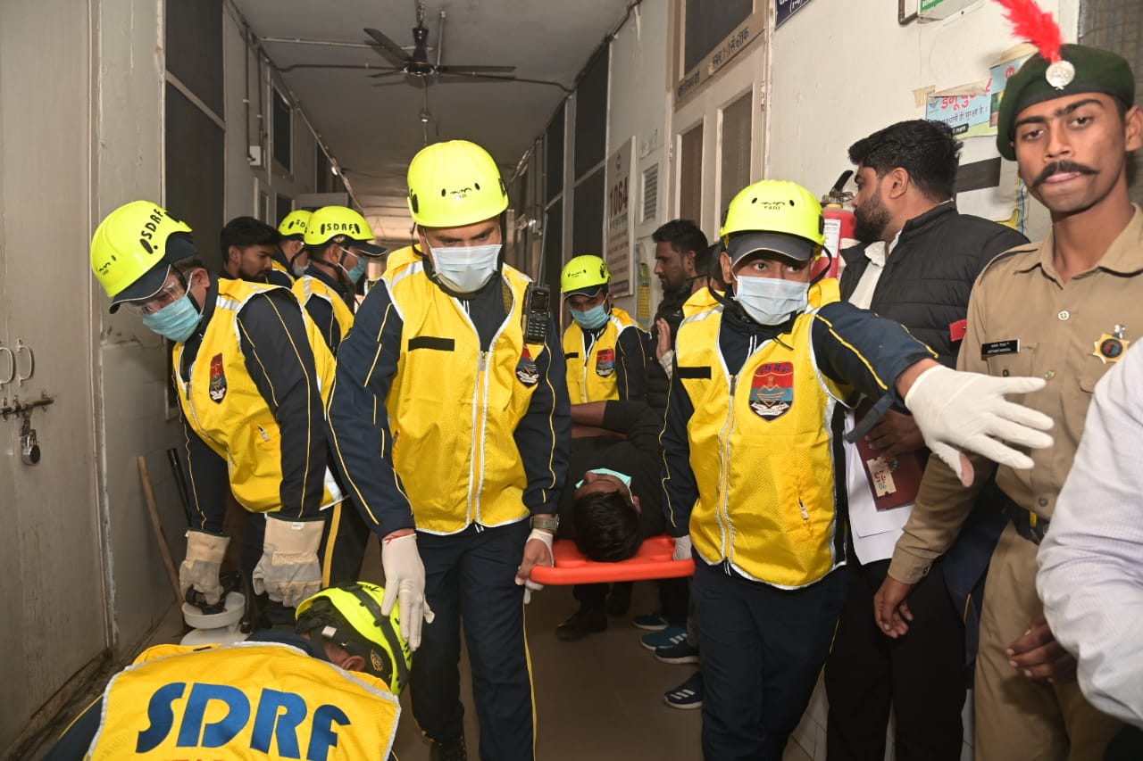 अस्पताल भवन का आंशिक रूप से ढह जाना, मरीज/स्टाफ का रेस्क्यू।