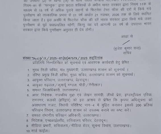 सीएम धामी ने प्रदेशवासियों को दी यह बड़ी राहत…15 वर्ष पुराने कमर्शियल वाहनों की फिटनेस फीस 1 वर्ष नहीं बढ़ेगी