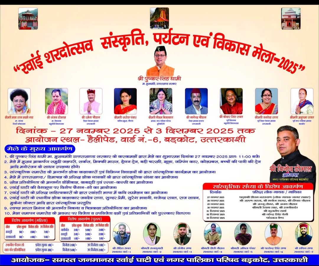 बड़कोट (उत्तरकाशी) : नगरपालिका बड़कोट द्वारा आयोजित रवांई शरदोत्सव संस्कृति और विकास मेला इस बार विवादों के घेरे में आ गया है। पालिका वासियों ने नगरपालिका बड़कोट पर मेले का राजनीतिकरण करने का आरोप लगाया है। उनका कहना है कि पारंपरिक स्वरूप में आयोजित होने वाले इस मेले को इस बार राजनीतिक हितों की भेंट चढ़ा दिया गया है।