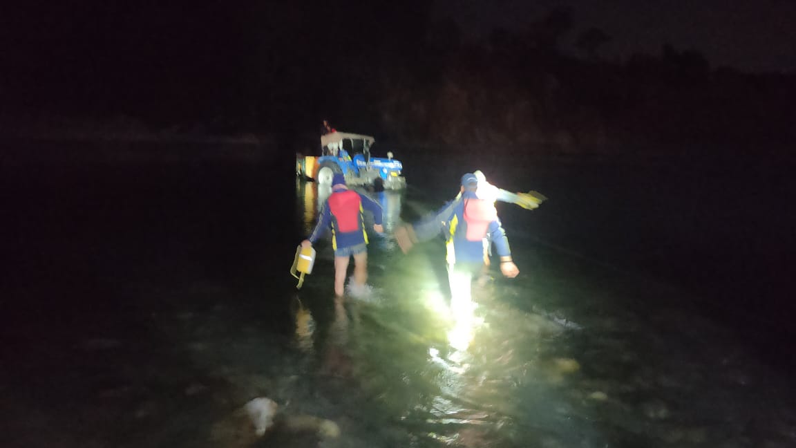 कटापत्थर के पास यमुना नदी की तेज धारा में ट्रैक्टर समेत फंसे तीन लोगों को SDRF ने रात के अंधेरे में ऐसे निकाला