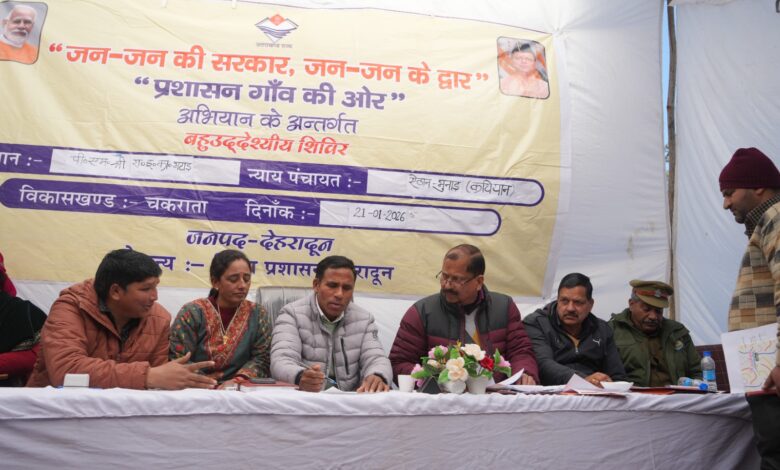 देहरादून, ब्यूरो। प्रदेश सरकार की महत्वाकांक्षी पहल ‘जन-जन की सरकार, जन-जन के द्वार, प्रशासन गांव की ओर’ अभियान के तहत बुधवार को चकराता ब्लॉक की सुदूरवर्ती क्षेत्र राजकीय इंटर कॉलेज कथियान में उप जिलाधिकारी प्रेम लाल की अध्यक्षता में जनसेवा शिविर का आयोजन किया गया। शिविर में ग्रामीणों की समस्याओं का मौके पर निस्तारण किया गया तथा विभागीय योजनाओं के माध्यम से 1086 से अधिक लोगों को लाभान्वित किया गया।