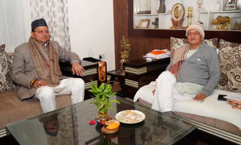 CMधामी ने पद्म भूषण सम्मान के लिए चयनित होने पर पूर्व CM कोश्यारी को आवास पर पहुंच कर दी बधाई