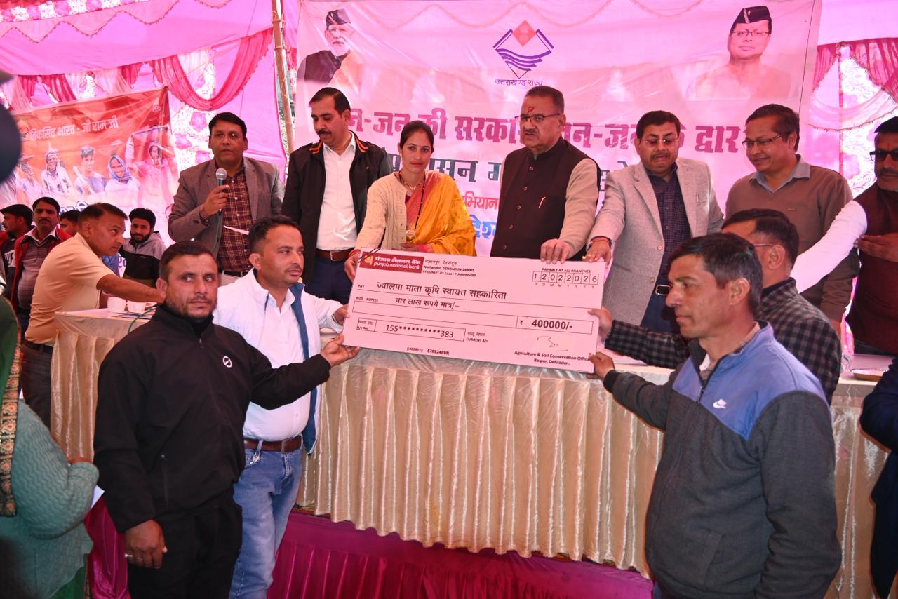 देहरादून, ब्यूरो। “जन-जन की सरकार, जन-जन के द्वार” कार्यक्रम के अंतर्गत बृहस्पतिवार को विकासखंड रायपुर के दूरस्थ न्याय पंचायत सरोना में अपर जिलाधिकारी (वि.रा.) केके मिश्रा की अध्यक्षता में बहुउद्देशीय शिविर का आयोजन किया गया। शिविर मुख्य अतिथि कैबिनेट मंत्री गणेश जोशी ने विभिन्न विभागों द्वारा लगाए गए स्टालों का निरीक्षण करते हुए जन समस्यएं सुनी। इस दौरान विभिन्न विभागों के माध्यम से 451 लोगों को जनकल्याणकारी योजनाओं का प्रत्यक्ष लाभ प्रदान किया।