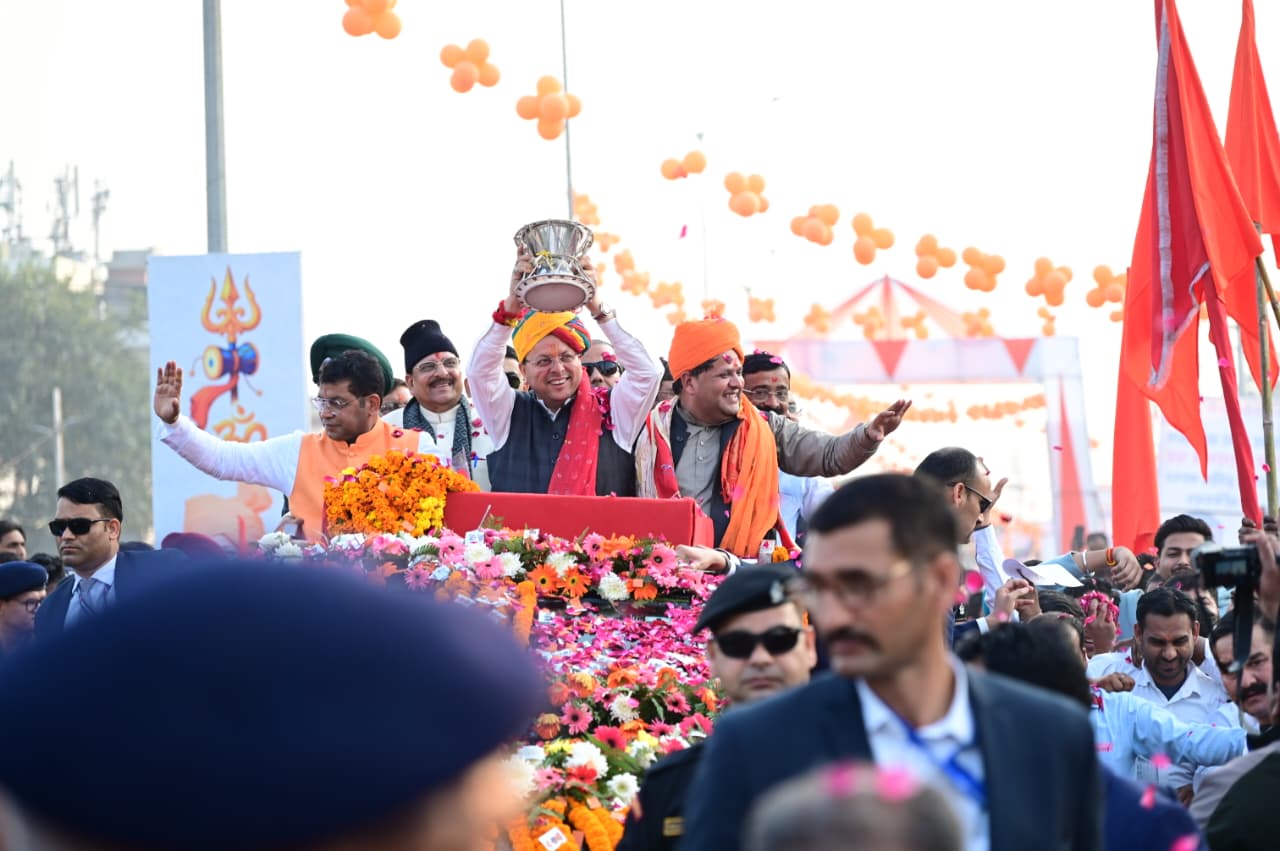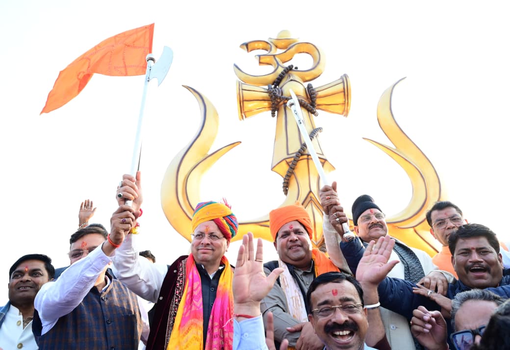 इससे पूर्व मुख्यमंत्री धामी ने त्रिशूल चौक का लोकार्पण किया उससे पूर्व उन्होंने कांवरियों की पैर पखारे एवं उनको अंगवस्त्र व पुष्प माला भेंट कर उनका अभिवादन किया, इसके उपरांत त्रिशूल चौक से सरस मेला कार्यक्रम स्थल गांधी पार्क तक आयोजित शिव बारात में प्रतिभाग किया। शिव बारात में माननीय मुख्यमंत्री का विभिन्न संगठनों व जनता द्वारा फूलमाला,पुष्पवर्षा कर भव्य स्वागत किया।